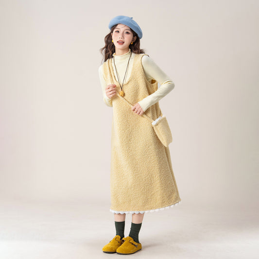 2点セット!【セットアップ】大人可愛い ウールキャミワンピース+インナートップスセット レディース 秋冬 韓国風オシャレ【JZシリーズ】