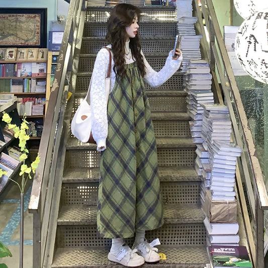 2点セット【セットアップ】韓国風 春秋 カラフルドーパミンチェック キャミワンピースセット レディース【SHシリーズ】【JZシリーズ】