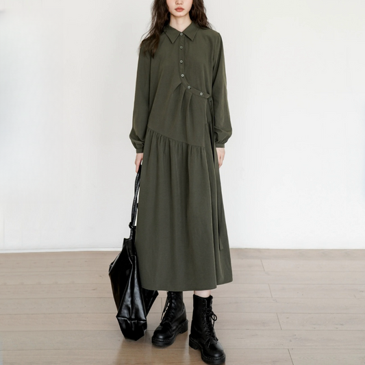 【ワンピース】春秋冬 chic レトロ ゆったり 折り襟 長袖ワンピース