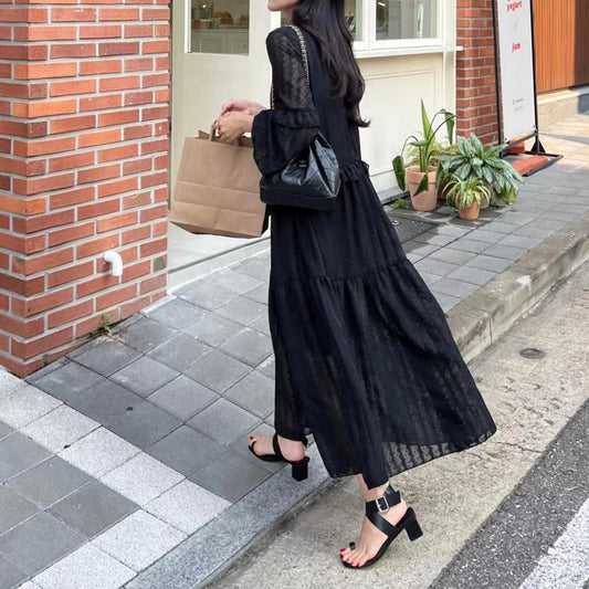 【24AW】【ワンピース】春秋夏 エレガント 合わせやすい 海外トレンド 長袖ワンピース