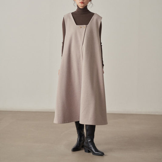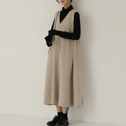 【ワンピース】春秋 全4色 ハイエンド 無地 ルース ノースリーブワンピース