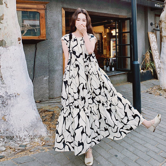 🚀 大人気商品【ワンピース】アート油絵風 ゆったりレトロ 着痩せ効果 ノースリーブワンピース【SHシリーズ】
