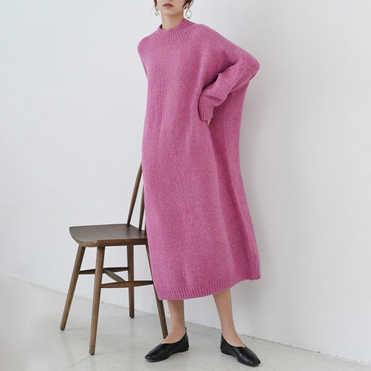 【ワンピース】春秋冬 無地 暖かい ロング 長袖ワンピース