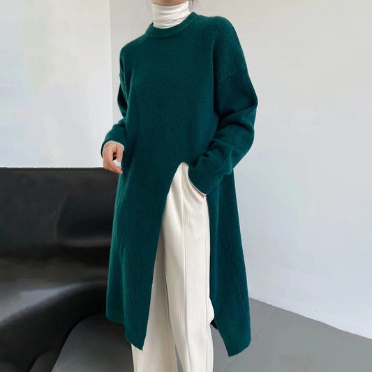【ワンピース】春秋冬 ゆったり 大きいサイズ ラウンドネック 長袖ワンピース