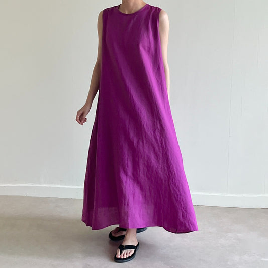 🔥人気急上昇中🔥【ワンピース】夏 レトロ 無地 綿麻 ロング ノースリーブワンピース