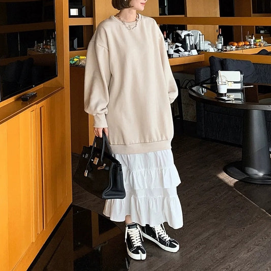 【ワンピース】春秋夏 ファッション 大きいサイズ ルーズ カジュアル 長袖ワンピース