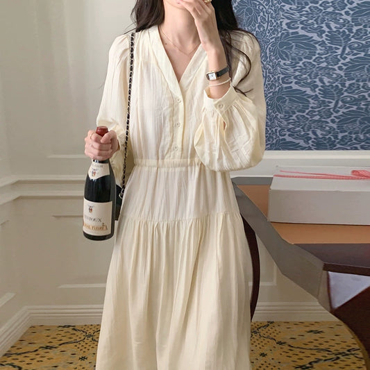 【ワンピース】春秋夏 優しい パフスリーブ 高級 長袖ワンピース