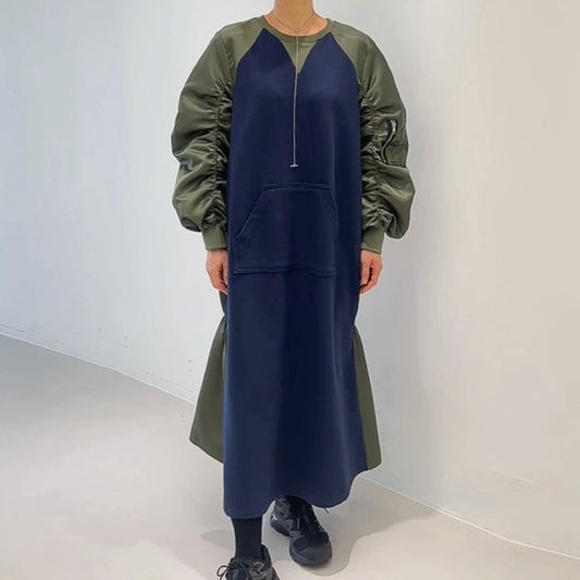 【ワンピース】春秋 切り替え パーカー 長袖ワンピース