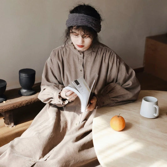 【ワンピース】春秋冬 日系 レトロ 文芸スタイル スタンドネック 長袖ワンピース