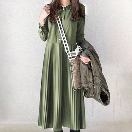 【ワンピース】春秋冬 日系 高級感 合わせやすい 折り襟 長袖ワンピース
