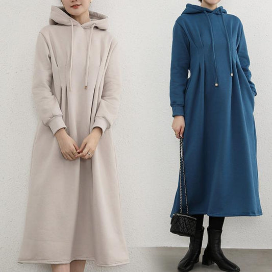 【ワンピース】春秋冬 裏起毛 フード付き 着痩せ 長袖ワンピース