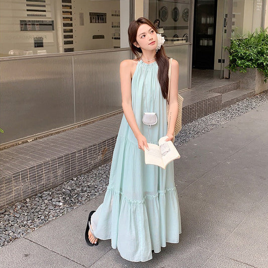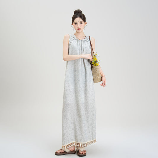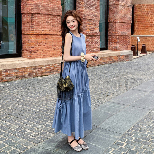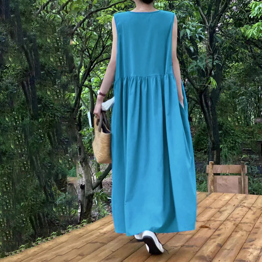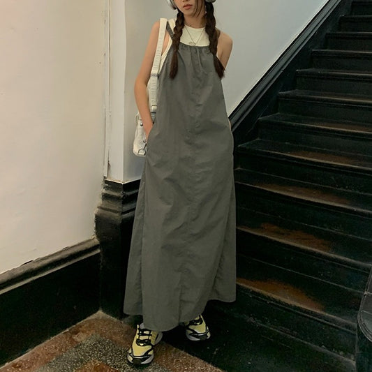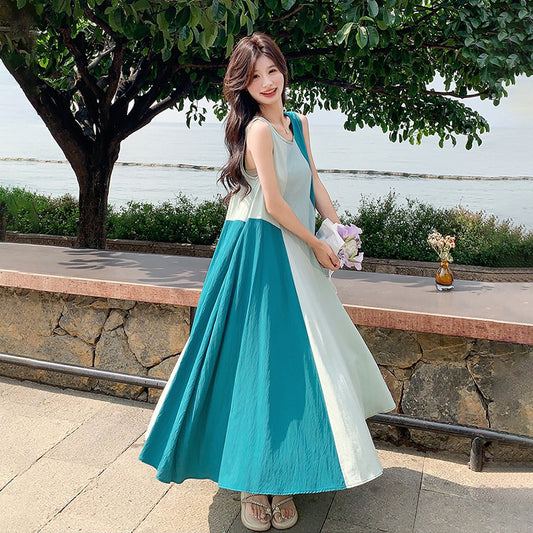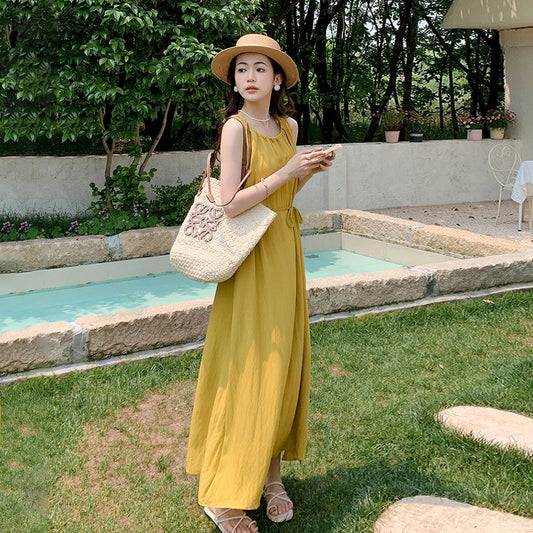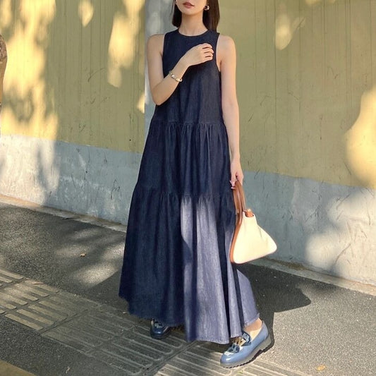 【ワンピース】夏 レトロ バンド飾り ロング ノースリーブ ワンピース