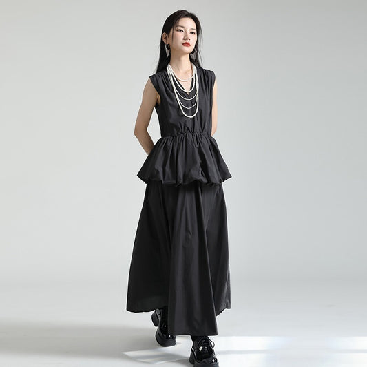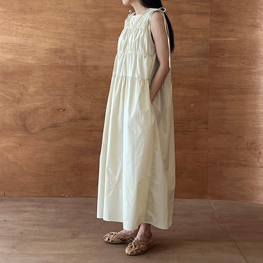 【ワンピース】夏 ゆるリラックス 大振裾 ラシャ生地 ノースリーブ ワンピース