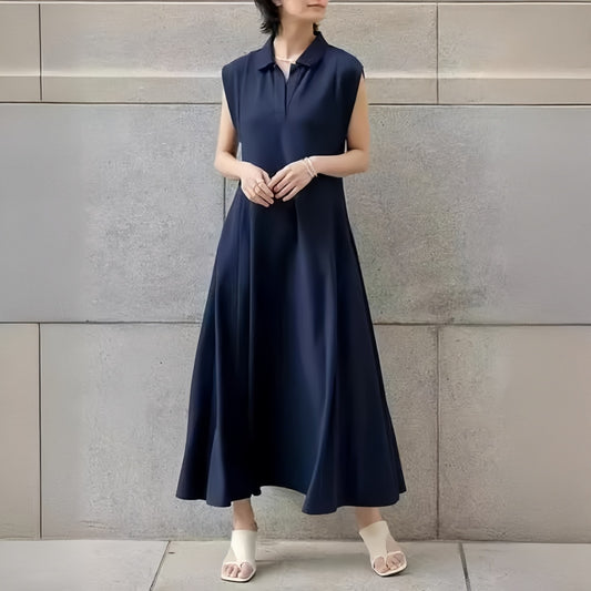 【ワンピース】日本風 夏の新作 スリム見えカジュアル シンプルなポロ襟 ノースリーブワンピース【AHシリーズ】