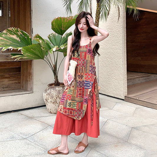 【ワンピース】夏新作 エスニック風 高級感 ゆったりカジュアル リゾート ノースリーブワンピース【SHシリーズ】
