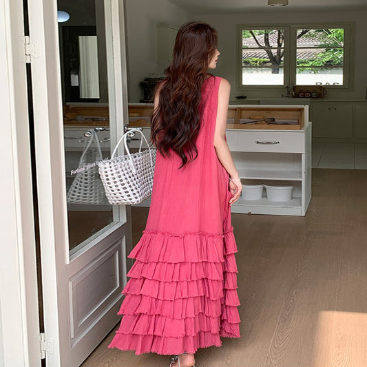 【ワンピース】夏 韓国系 気質 ケーキスカート フィリピンピンク ノースリーブ ワンピース