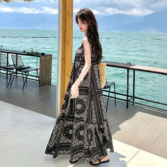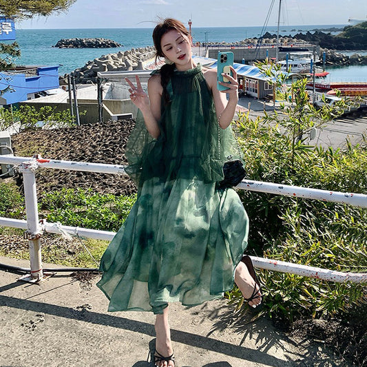 【ワンピース】ビーチリゾート風 夏 高級感 独特なエレガンス ノースリーブワンピース【SHシリーズ】