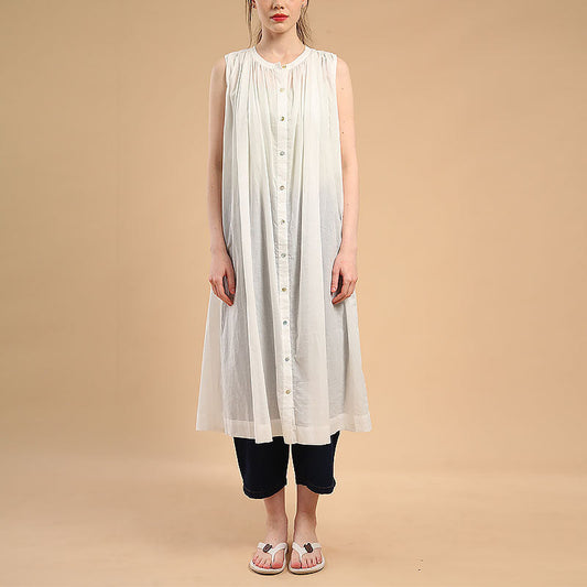 【ワンピース】夏 ゆったり スタンドカラー 薄手 Aライン ノースリーブワンピース