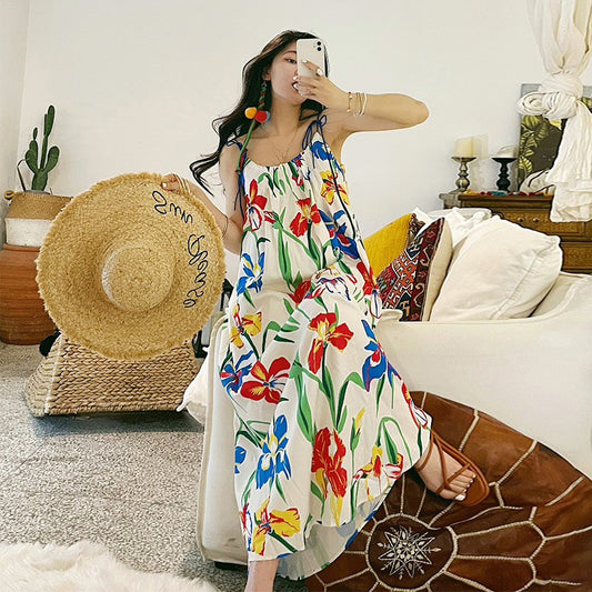 【ワンピース】夏 ゆったり リゾートビーチ 花柄ノースリーブキャミワンピース【SHシリーズ】