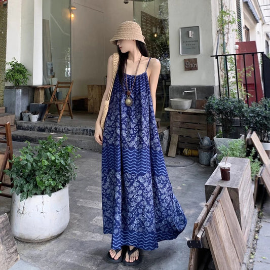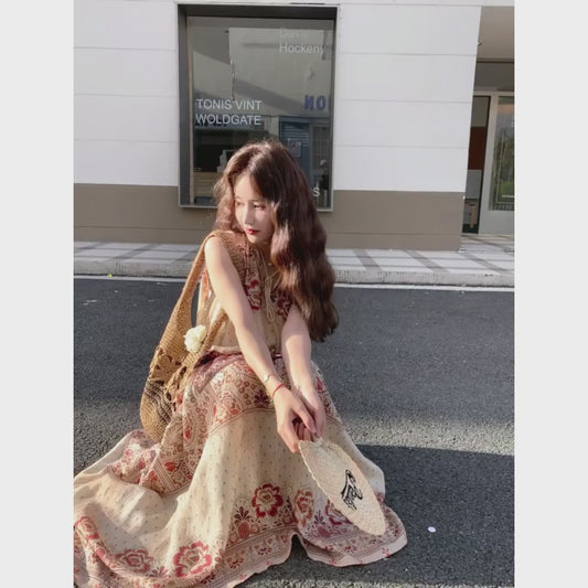 【ワンピース】フレンチヴィンテージ 花柄ボヘミアンワンピース ゆったり 夏新作 ノースリーブワンピース【SHシリーズ】