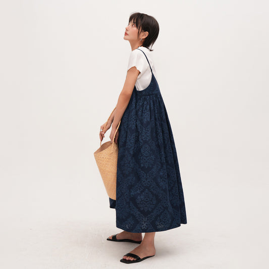 【ワンピース】夏 ブラック×エスニック風 大人上品ノースリーブ キャミソールロングワンピース【SHシリーズ】