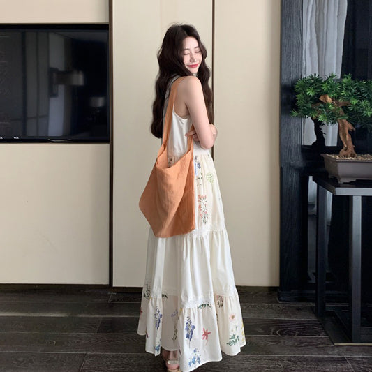 【ワンピース】フレンチスウィート バカンス風 ロマンティックな気質 ノースリーブワンピース