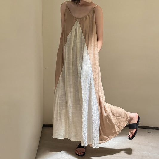 【ワンピース】夏新作 リラックス感漂うリゾートロングドレス 切り替え ノースリーブワンピース【SHシリーズ】