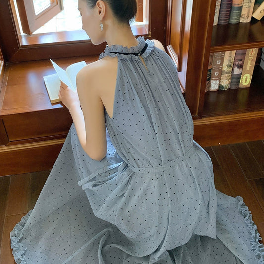 【ワンピース】夏 フリルレース ホルターネック ロング ノースリーブ ワンピース 【JZシリーズ】
