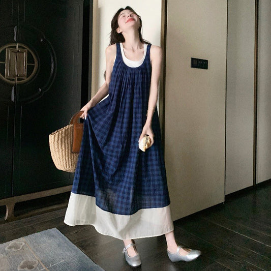 【ワンピース】夏新作 レトロ チェック柄 ゆったり カジュアル ノースリーブキャミワンピース【SHシリーズ】