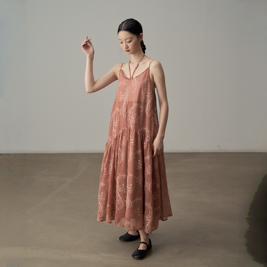 【ワンピース】夏新作 アート水墨画デザイン ゆったりカジュアル リラックスシルエット ノースリーブキャミワンピース【SHシリーズ】