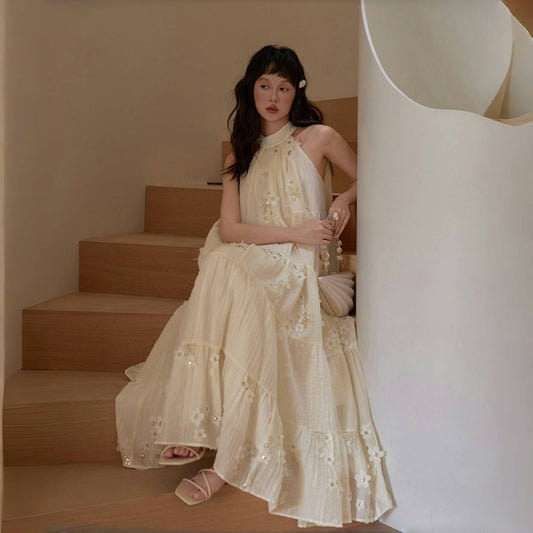 【ワンピース】夏 刺繍 エレガント 花柄スパンコール ホルターネック ノースリーブ ワンピース 【SHシリーズ】