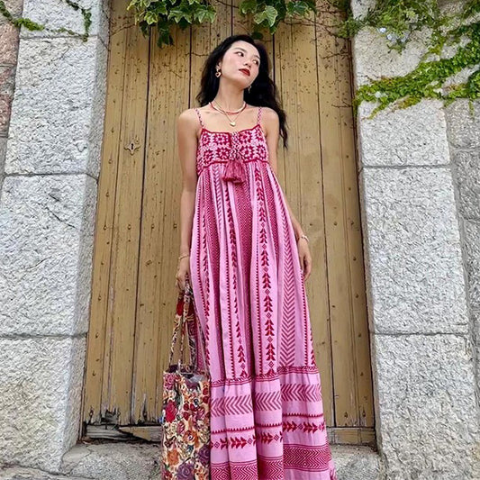 【ワンピース】旅行コーデ レディース 夏 民族風 刺繍入り ビーチ リゾート キャミソール ノースリーブワンピース【SHシリーズ】