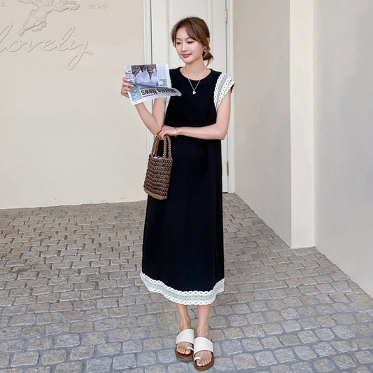 【ワンピース】夏 ゆったり 配色 韓国風 着痩せ 半袖ワンピース