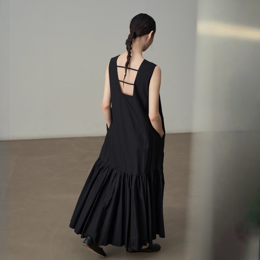 【ワンピース】フレンチレトロな切り替え ノースリーブワンピース ゆる感たっぷりの絶妙シルエット【JZシリーズ】