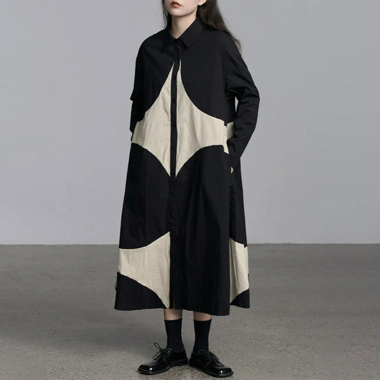 【ワンピース】春 秋 冬 フリル縁 アシンメトリーパッチワーク 長袖 ワンピース 【SHシリーズ】
