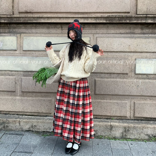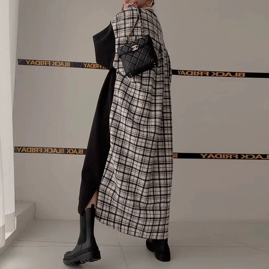【ワンピース】春秋冬 レトロ 厚手 大振裾 チェック柄 長袖 ワンピース 【JZシリーズ】