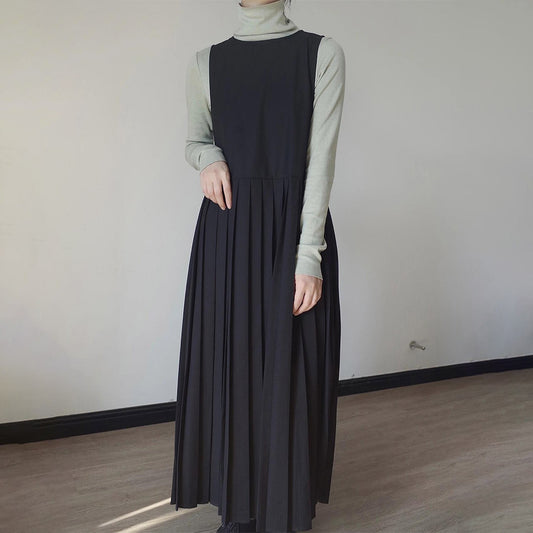 【ワンピース】春秋冬 トレンドリーダー シンプル 切り替えし プリーツ ノースリーブワンピース