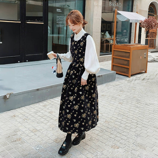 【ワンピース】春秋冬 プリント ビロード 刺繍 ノースリーブ ワンピース【JZシリーズ】
