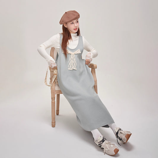 【ワンピース】可愛さUP🌸蝶結びデザイン ニットノースリーブワンピース 冬 レディース 上品【JZシリーズ】