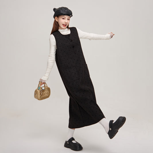 【ワンピース】デザイン重視♡ツイード×ドット柄 ノースリーブ ベストワンピース レディース 秋冬 高見え【JZシリーズ】