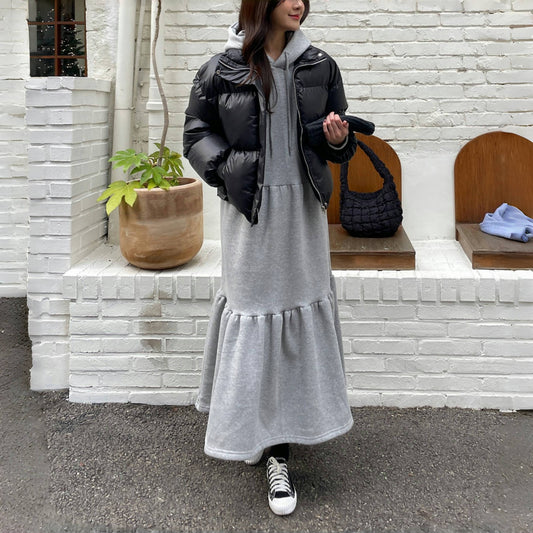 【ワンピース】春秋冬 ゆるリラックス 切り替え フード付き パーカー長袖 ワンピース