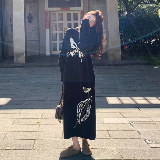 2点セット【セットアップ】デザイン感 ニット上下セット レディース 秋新作 韓国風気質 セーター+ スカート 2点セット【JZシリーズ】