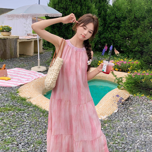 【ワンピース】夏 優しいフレンチ風 ゆったり グラデーション ノースリーブキャミソールワンピース【SHシリーズ】
