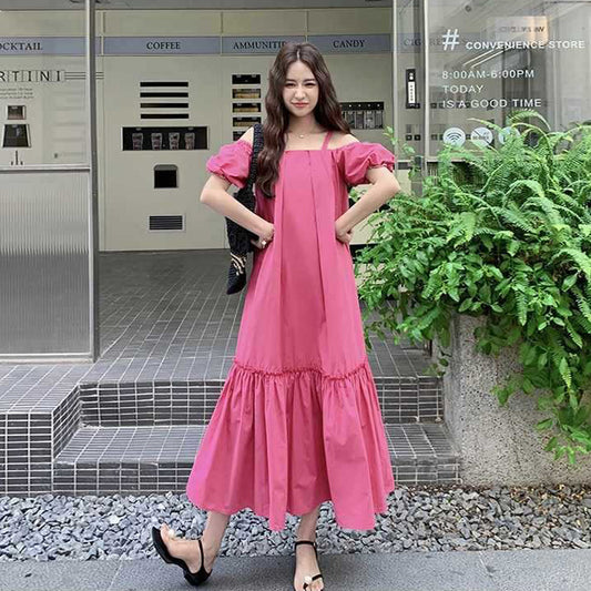 【ワンピース】高級感 パフスリーブ 夏 韓国風 ゆったり 細見え 半袖ワンピース