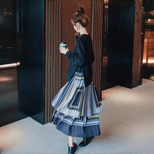 【ワンピース】春秋 個性柄 カジュアル レイヤード風 長袖ワンピース【SHシリーズ】