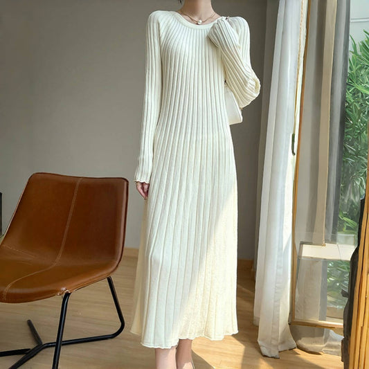 【ワンピース】春秋冬 リブ ラウンドネック 着痩せ効果 ワンピース