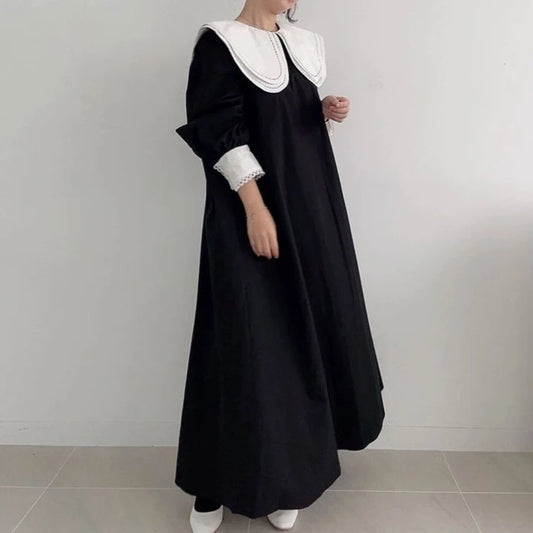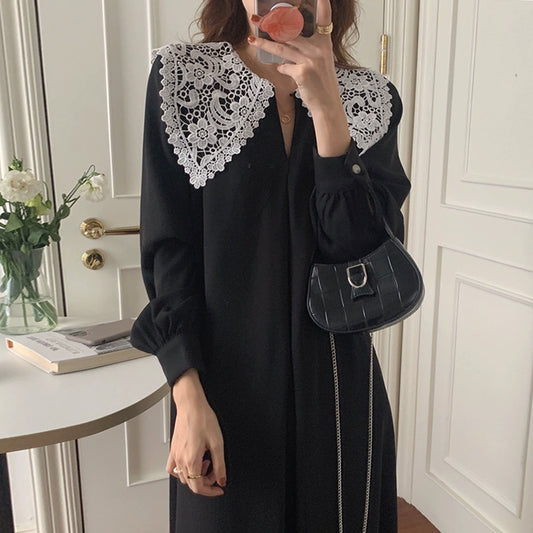 【ワンピース】春秋 レース襟 エレガント 長袖ワンピース