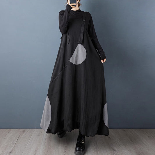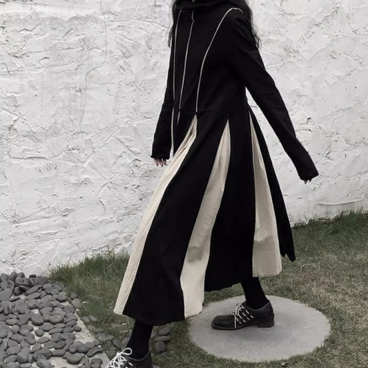 【ワンピース】春秋 シンプル 配色イレギュラーデザイン 長袖ワンピース