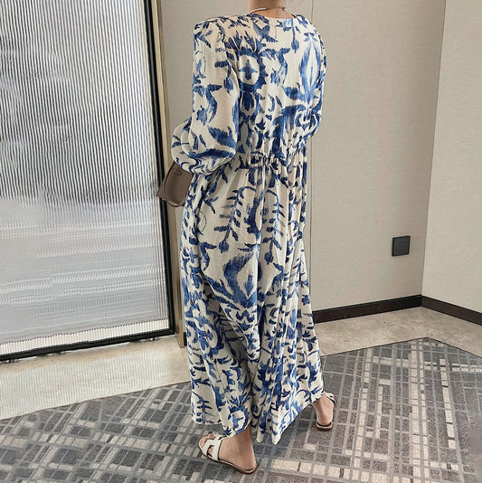 【ワンピース】春 秋 冬 大人フェミニン 墨絵プリント 気質よい 着痩せ 長袖ワンピース【SHシリーズ】