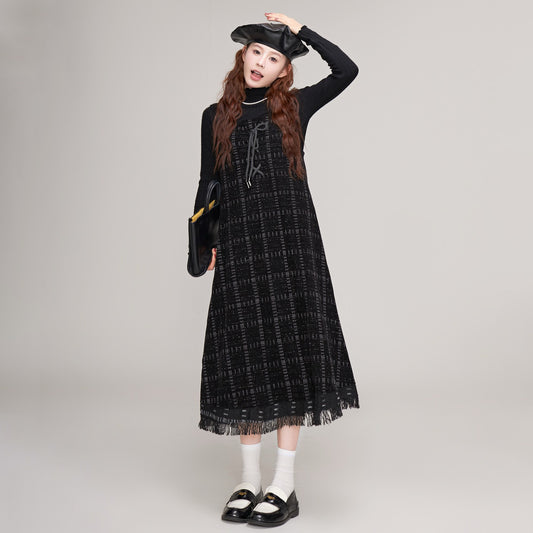 2点セット!【セットアップ】韓国風 ドット柄ウールベストワンピース+インナートップス セット【JZシリーズ】